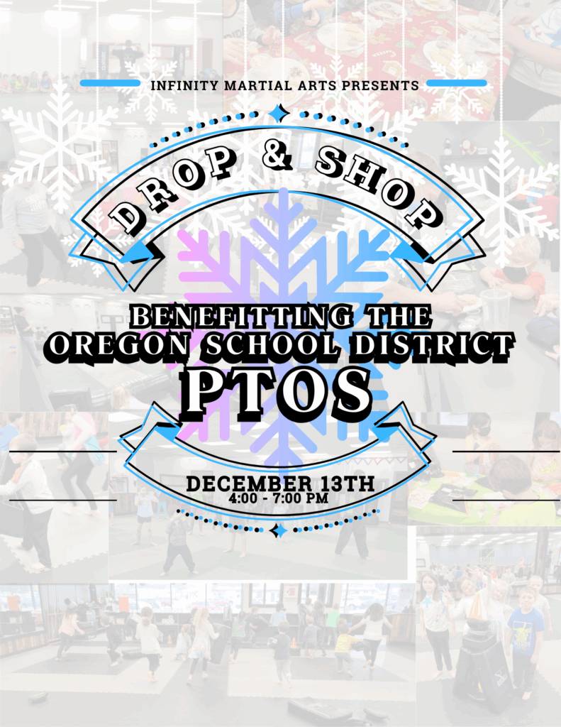 Want to go shopping without the kids? Maybe decorate for the holidays or even go to a movie? For a $35 donation per child to any of the OSD PTOs, we’ll learn about RESPECT, Self Defense, play karate games, do holiday crafts, decorate cookies, have some snacks and watch a PG holiday classic!